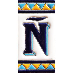 Letreros con números y letras en azulejo de cerámica policromada, pintados a mano en técnica cuerda seca para placas con nombres, direcciones y señaléctica. Texto personalizable.