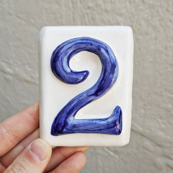 • Letreros con números y letras en azulejo de cerámica policromada, pintados a mano en técnica cuerda seca para placas con nombres, direcciones y señalética.