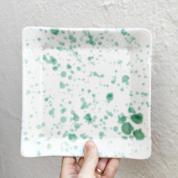 Platos de cerámica en gres - 2 unidades - Estilo "Gotas/Verde" - Hechos en Córdoba, Andalucía (España) -