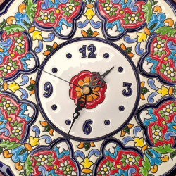 Reloj-Plato de cerámica en Estilo "Cuerda Seca" - 24cm. (9.45") - 1 pieza - Hecho en Sevilla (España) -