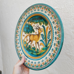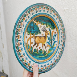 Plat de 33 cm. (13") de diamètre, entièrement fait à la main et peint à la main.