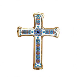 Cruz de cerámica esmaltada con oro.
