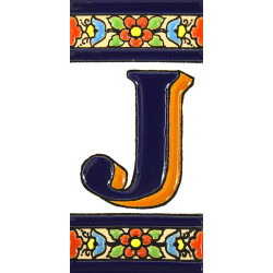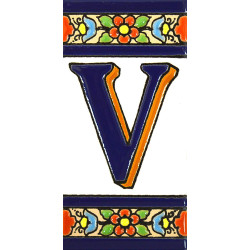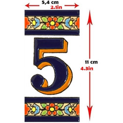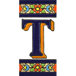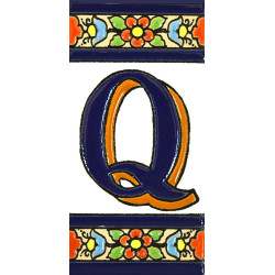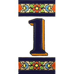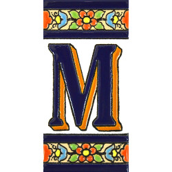 Letreros con números y letras en azulejo de cerámica policromada, pintados a mano en técnica cuerda seca para placas con nombres, direcciones y señalética. Texto personalizable.