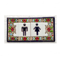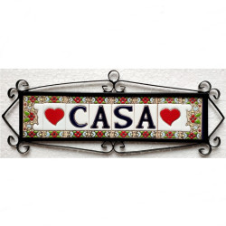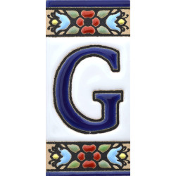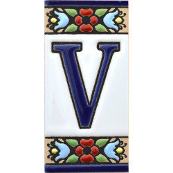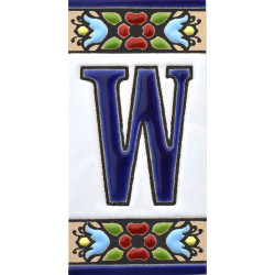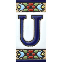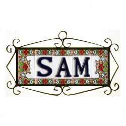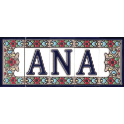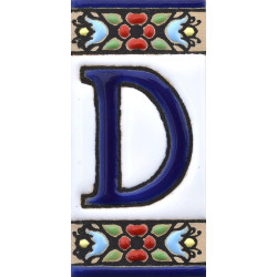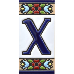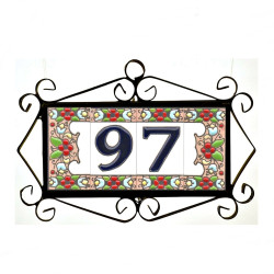 Letreros con números y letras en azulejo de cerámica policromada, pintados a mano en técnica cuerda seca para placas con nombres, direcciones y señaléctica. Texto personalizable.