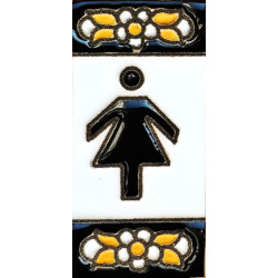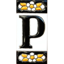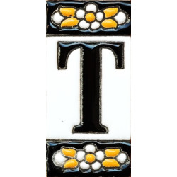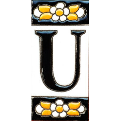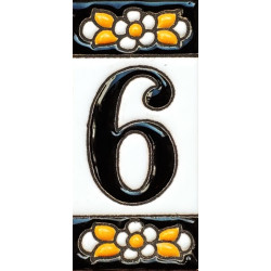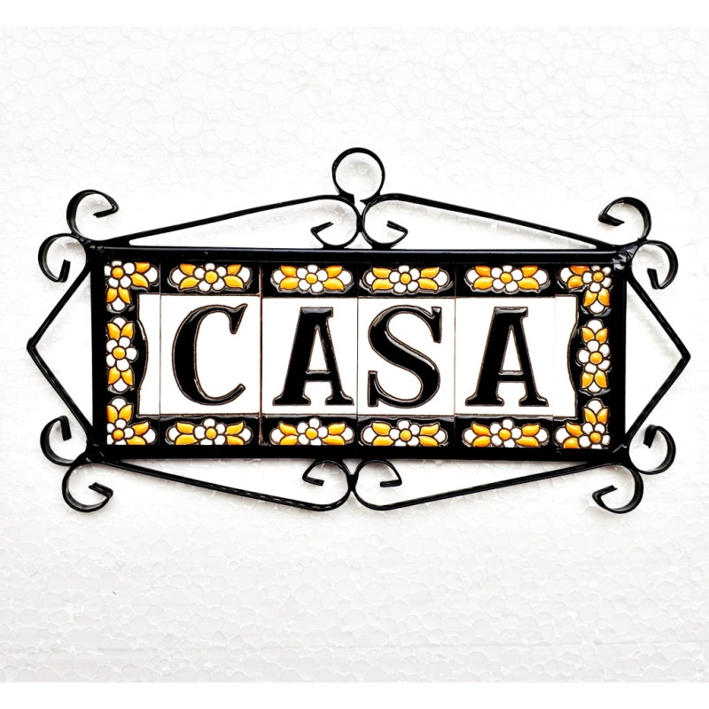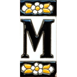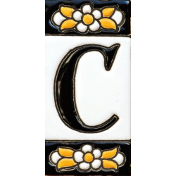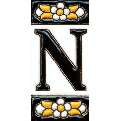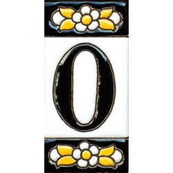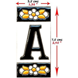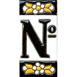 Letreros con números y letras en azulejo de cerámica policromada, pintados a mano en técnica cuerda seca para placas con nombres, direcciones y señaléctica. Texto personalizable.