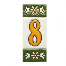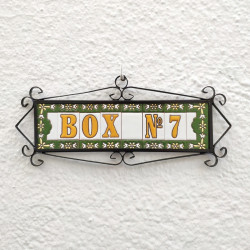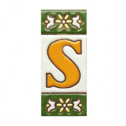 Letreros con números y letras en azulejo de cerámica policromada, pintados a mano en técnica cuerda seca para placas con nombres, direcciones y señaléctica. Texto personalizable.