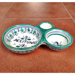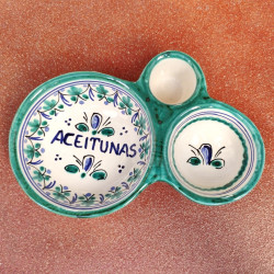 Aceitunero de cerámica - Estilo "Azul/Verde" - 20 cm. (8") - Toledo (España) -