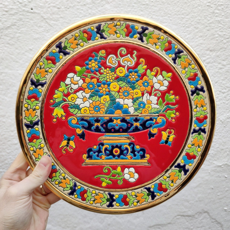 Certificamos que esta pieza pintada en cuerda seca está realizada a mano y acabada en oro de 24Kl.