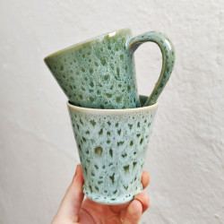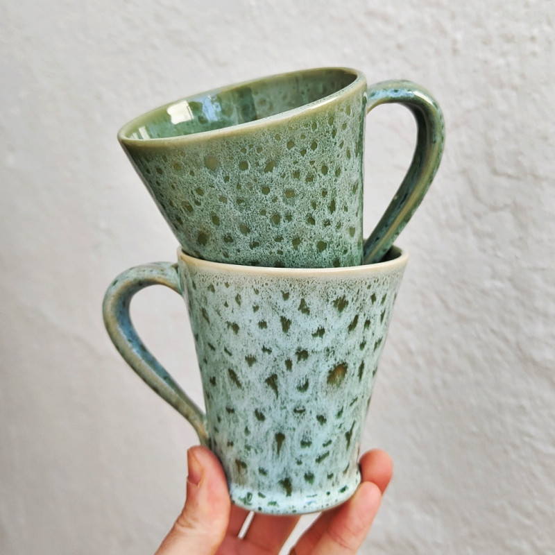 Set de dos tazas en "gres" - 10.5cm. (4.1") - Estilo "Serpiente/Verde" - Hechas en Andalucía (España) -