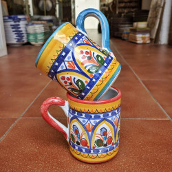 Set de dos tazas de cerámica ref.72-12 - Estilo "Amarillo/Color" - 9.5 cm. (3.75") - Toledo (España) -