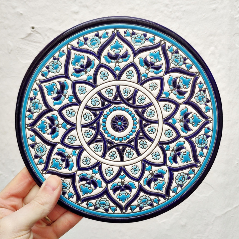 Plato de cerámica en Estilo "Cuerda Seca" - 21cm.(8.3") - Hecho en Sevilla (España) -