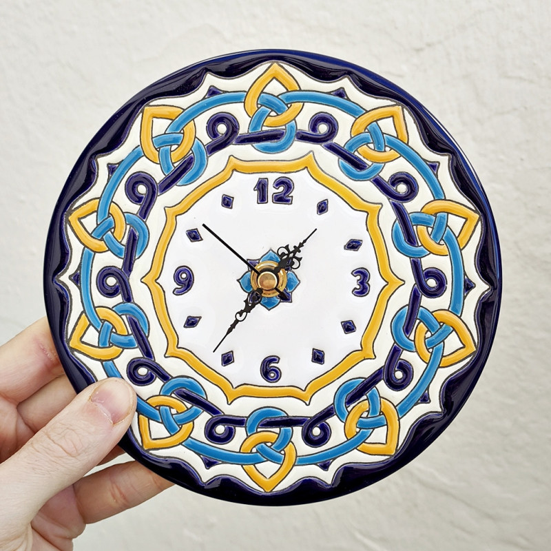Reloj-Plato de cerámica en Estilo "Cuerda Seca" - 17 cm. (6.7") - Hecho en Sevilla (España) -
