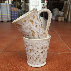 Set de dos tazas en "gres" - 10.5cm. (4.1") - Estilo "Serpiente/Marrón" - Hechas en Andalucía (España) -