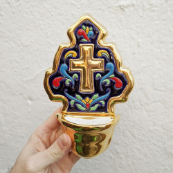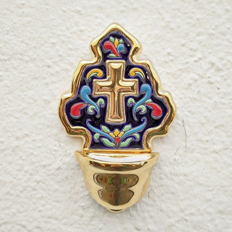 Benditera de cerámica - 21 cm. (8") - "Cuerda seca" - 24k Gold/Oro - Hecho en Sevilla, Andalucía -