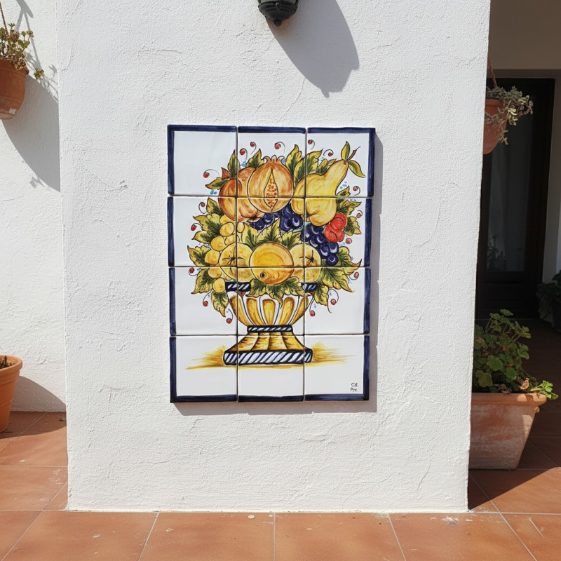 Mural de Azulejos de cerámica "FRUTAS" - 12 piezas - Hecho en Toledo (España) - 51x39cm.