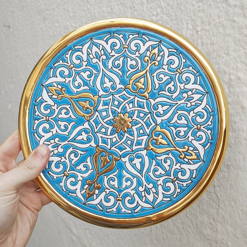 "Artecer" es el más prestigioso de los fabricantes de estos platos de cerámica Sevillanos. Estos platos están esmaltados con oro de 24 quilates. Es conocido como el trabajo de “cuerda seca”, que fue traído por los árabes en el siglo VIII a Andalucía. Desde entonces este trabajo artesanal se ha realizado en España.