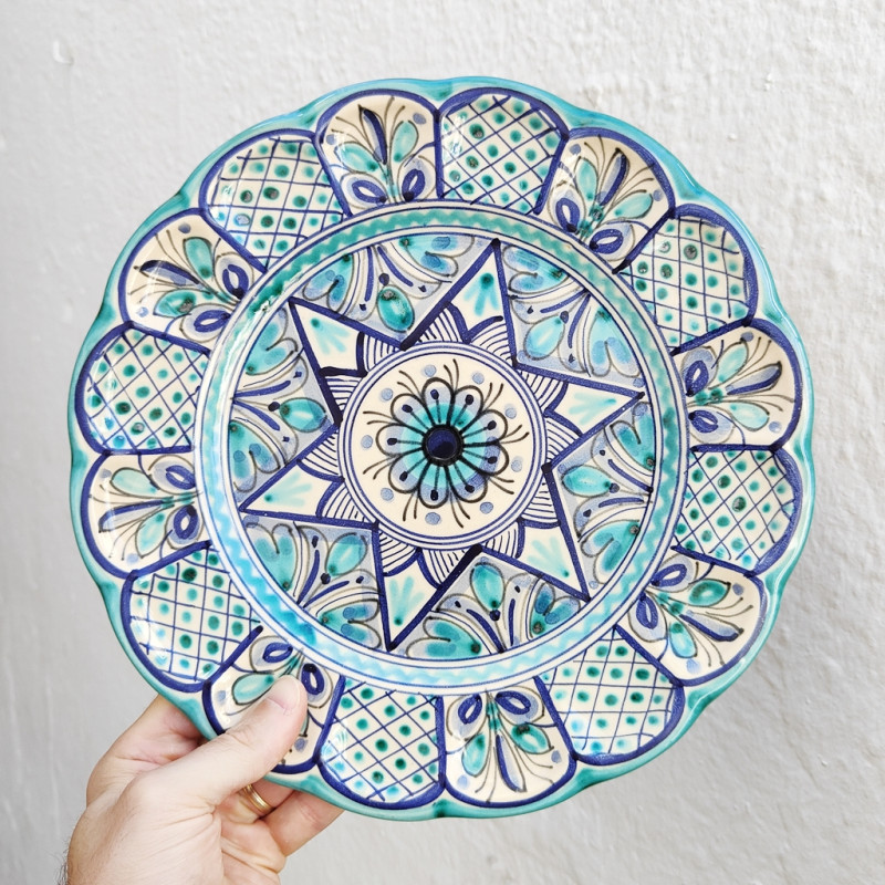 Plato de cerámica, modelo "Castañuela" - Estilo "Azul/Verde" - 30 cm. (11.5") - Toledo (España) -