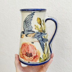 Jarra de cerámica - Estilo "Pájaros" - 19 cm. - Hecho en Sevilla - Andalucia (España) -