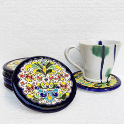 Set de seis posavasos de cerámica - 11cm. (4.3") - "Cuerda seca" - Hecho en Sevilla, Andalucía -
