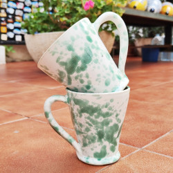 Set de dos tazas en "gres" - 10.5cm. (4.1") - Estilo "Gotas/Verde" - Hechas en Andalucía (España) -