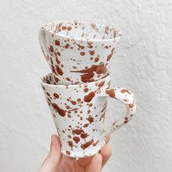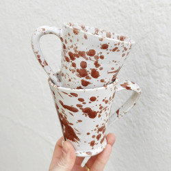 Set de dos tazas en "gres" - 10.5cm. (4.1") - Estilo "Gotas/Marron" - Hechas en Andalucía (España) -