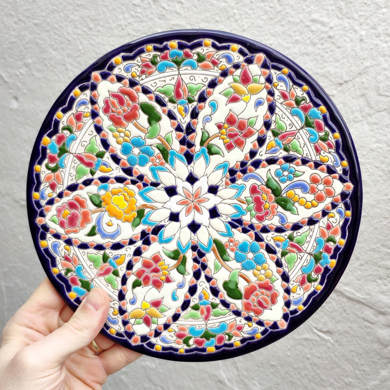 Plato de cerámica en Estilo "Cuerda Seca" - 24cm. (9.5") - Hecho en Sevilla (España) -