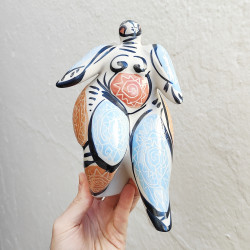 Es una combinación de la cerámica artística gallega y diseños actuales, realizado por un artista muy apreciado, que además ha conseguido tener el 1º premio de Artesanía Española en el año 2011.