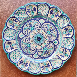 Plato de cerámica, modelo "Castañuela" - Estilo "Azul/Verde" - 30 cm. (11.5") - Toledo (España) -