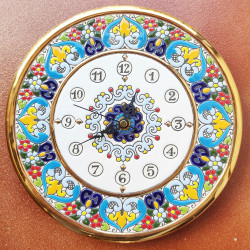 Reloj-Plato de cerámica en Estilo "Cuerda Seca" - 24cm. (9.45") - 1 pieza - Hecho en Sevilla (España) -