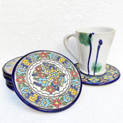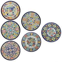 Set de seis posavasos de cerámica - 14cm. (5.5") - "Cuerda seca" - Hecho en Sevilla, Andalucía -