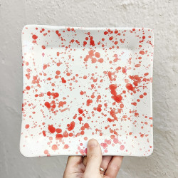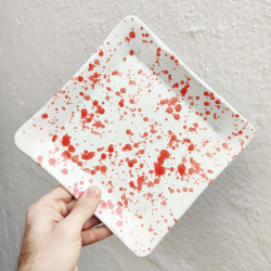 Platos de cerámica en gres - 2 unidades - Estilo "Gotas/Rojo" - Hechos en Córdoba, Andalucía (España) -