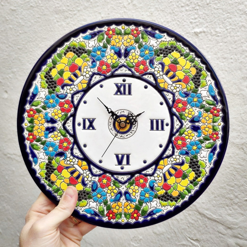 Reloj de cerámica en Estilo "Cuerda Seca" - 29 cm. - Hecho en Sevilla (España) -