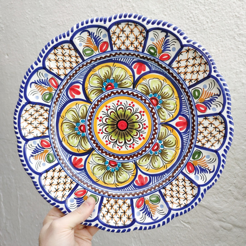 Plato de 34cm.(13.4") de diámetro, totalmente hecho y pintado a mano.
