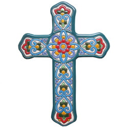 Croix en céramique réf.994-G - 27 cm. (10.6") - "Corde sèche" - Fabriqué à Séville, Andalousie -