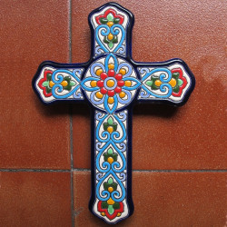 Croix en céramique réf.994 - 27 cm. (10.6") - "Corde sèche" - Fabriqué à Séville, Andalousie -