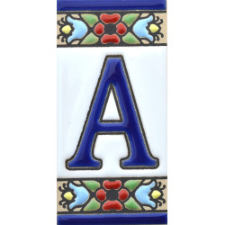 Enseignes avec chiffres et lettres en céramique polychrome, peintes à la main en technique corde sèche pour assiettes avec noms, adresses et signalétique. Texte personnalisable.
