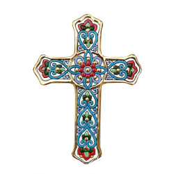 Croix en céramique réf.994-G - 27 cm. (10.6") - "Corde sèche" - Or 24 carats - Fabriqué à Séville, Andalousie -