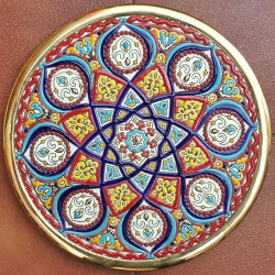 "Artecer" est le plus prestigieux des fabricants de ces assiettes en céramique de Séville. Ces assiettes sont émaillées à l'or 24 carats. Il est connu comme le travail de la "corde sèche", qui a été apporté par les Arabes au 8ème siècle en Andalousie. Depuis lors, ce savoir-faire a été réalisé en Espagne.