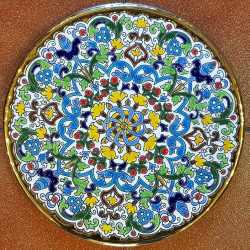 "Artecer" est le plus prestigieux des fabricants de ces assiettes en céramique de Séville. Ces assiettes sont émaillées à l'or 24 carats. Il est connu comme le travail de la "corde sèche", qui a été apporté par les Arabes au 8ème siècle en Andalousie. Depuis lors, ce savoir-faire a été réalisé en Espagne.