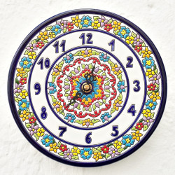 L'horloge en céramique de style «corde sèche» - 22cm. (8.7") - Fabriqué à Séville (Espagne) -