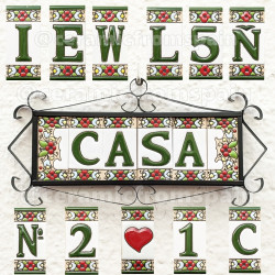 Lettres et chiffres en céramique - Desing "FLOR-1-Verde" - Fabriqué en Espagne -
