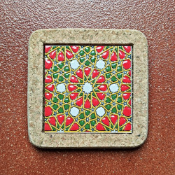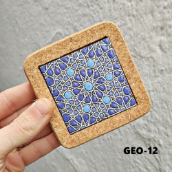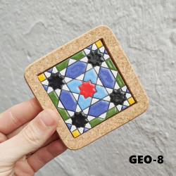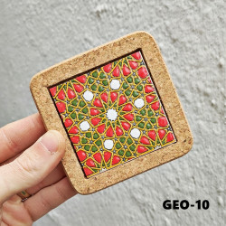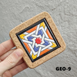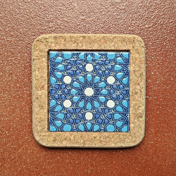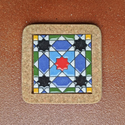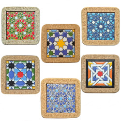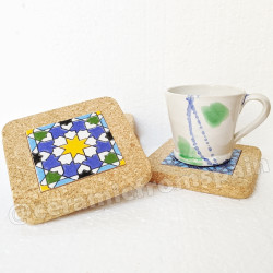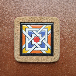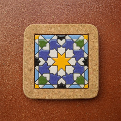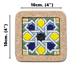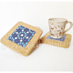 Set de six sous-verres en céramique avec liège - 10 cm. (4") - "Corde sèche" - Fabriqué à Séville, Andalousie -