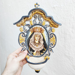 Font-croix "eau bénite" en céramique - "Style baroque" - 32 cm. - Fabriqué à Séville (Espagne) -