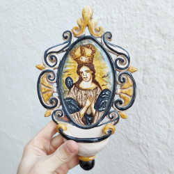 Font-croix "eau bénite" en céramique - "Style baroque" - 26 cm. - Fabriqué à Séville (Espagne) -