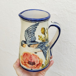 Cruche en céramique - Style "Oiseaux" - 19 cm. - Fabriqué à Séville (Espagne) -