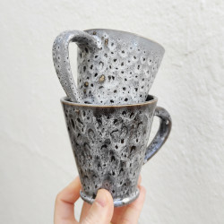 Set de deux mugs en "grès" - 10,5cm. (4.1") - Style " Snake/Noir" - Fabriqué en Andalousie (Espagne) -