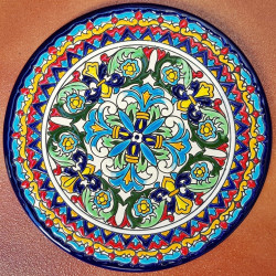"Artecer" est le plus prestigieux des fabricants de ces assiettes en céramique de Séville. Ces assiettes sont émaillées à l'or 24 carats. Il est connu comme le travail de la "corde sèche", qui a été apporté par les Arabes au 8ème siècle en Andalousie. Depuis lors, ce savoir-faire a été réalisé en Espagne.