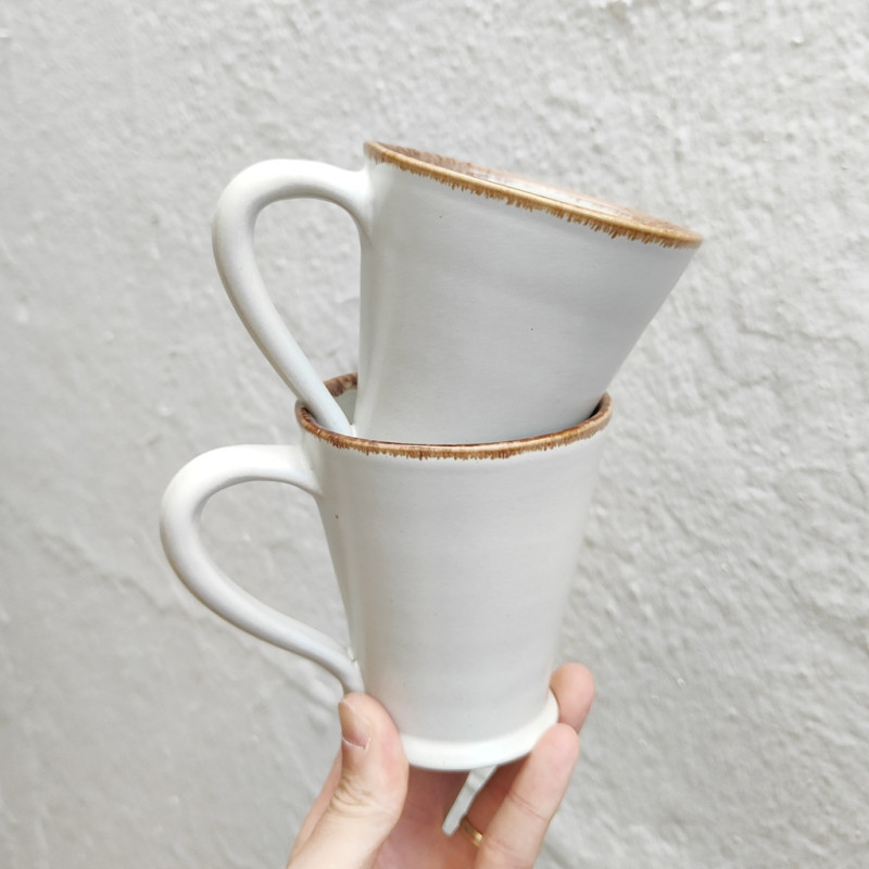 Set de deux mugs en "grès" - 10,5cm. (4.1") - Style "Blanc" - Fabriqué en Andalousie (Espagne) -
