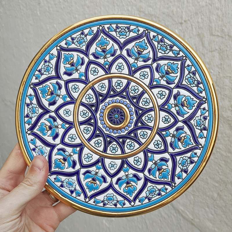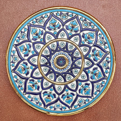 "Artecer" est le plus prestigieux des fabricants de ces assiettes en céramique de Séville. Ces assiettes sont émaillées à l'or 24 carats. Il est connu comme le travail de la "corde sèche", qui a été apporté par les Arabes au 8ème siècle en Andalousie. Depuis lors, ce savoir-faire a été réalisé en Espagne.