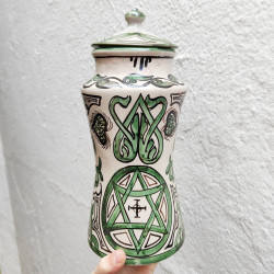 Vase avec couvercle entièrement réalisée et peinte à la main.
